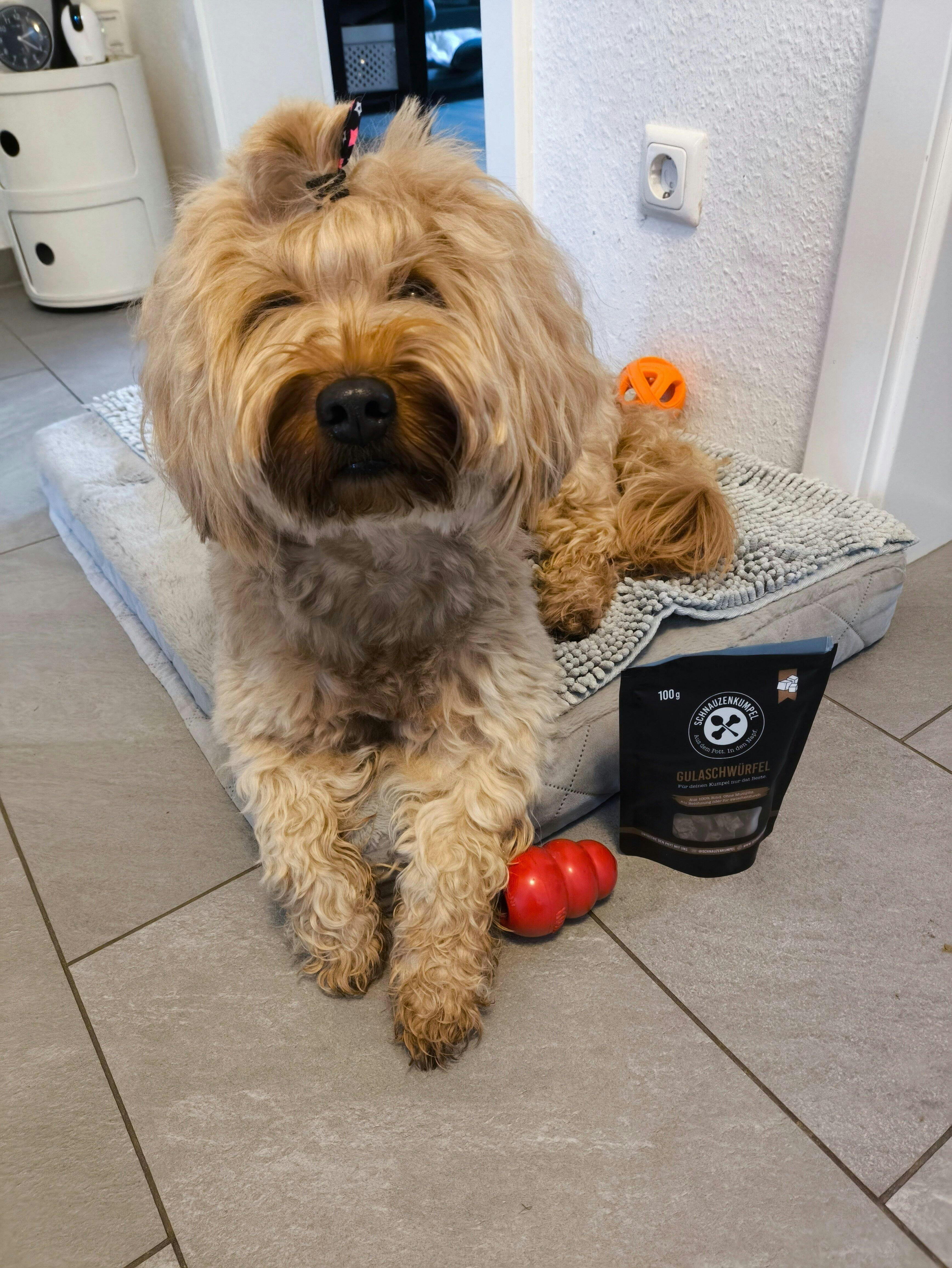 Dat hasse fein gemacht! Dafür gibt’s n lecker Gulaschwürfel. Egal ob im Training oder einfach ma so. Die Dinger gehen immer.